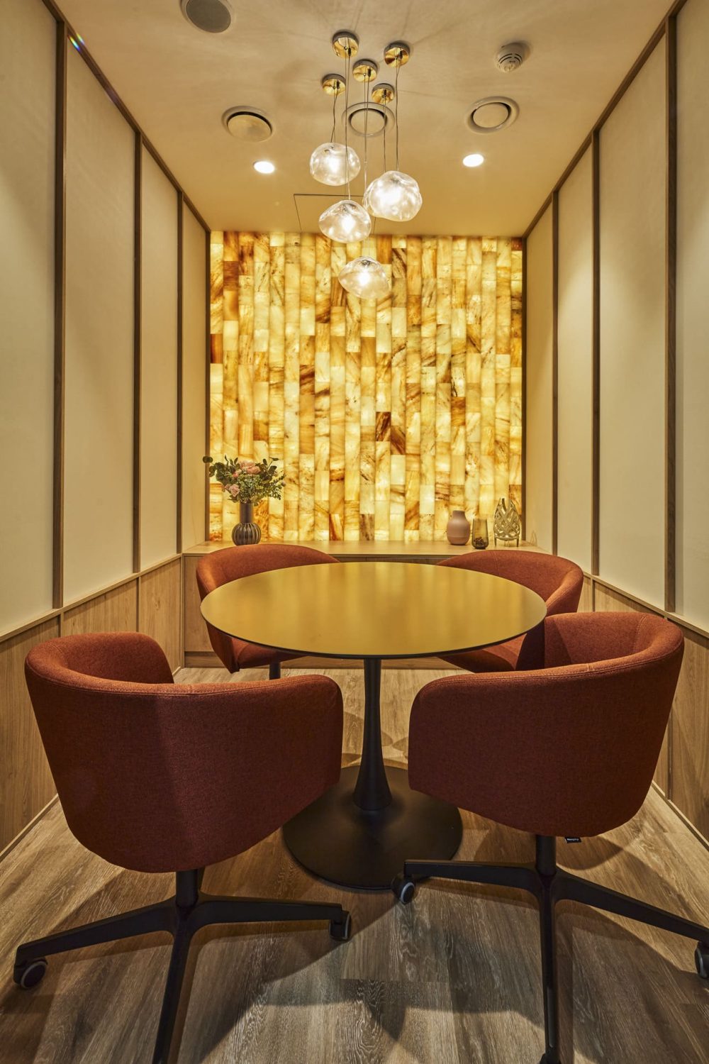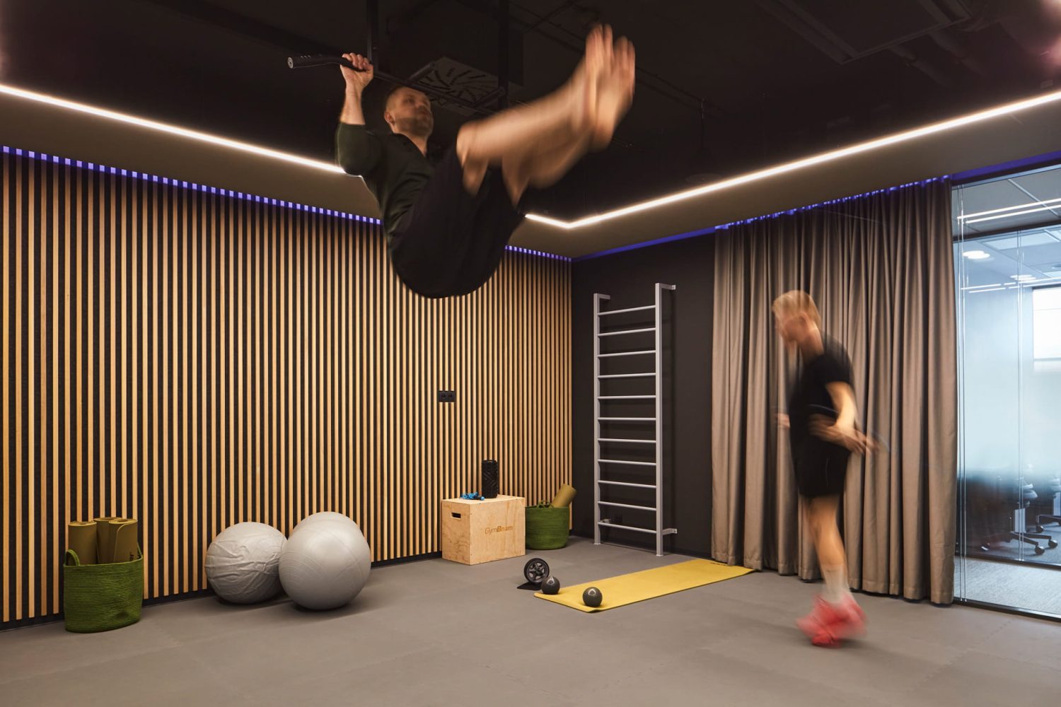 To support a healthy body, employees can stretch at any time during the day, go to the fitness center, practice yoga, play foosball or billiards. One of our meeting rooms is designed in the style of a salt cave with beneficial stones. For mental wellbeing, our center includes relaxation corners, quiet rooms, massage services, a room with a fireplace, massage chairs, and even places for sleeping. For socialization and personal development, we co-organize meetups, educational trainings, and social events.