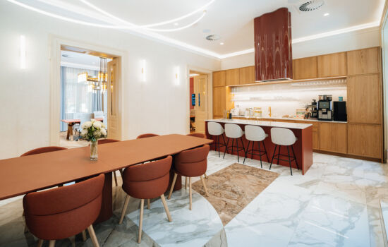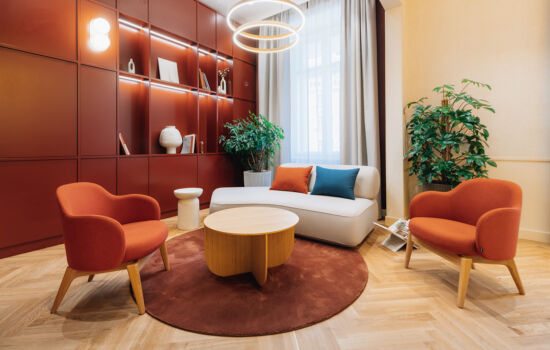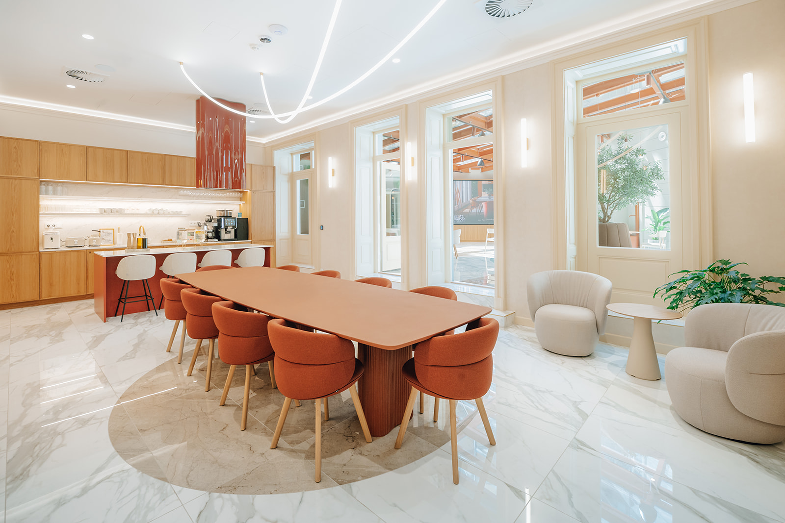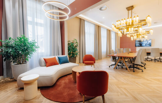 Zachovat citlivou rovnováhu mezi původní neobarokní krásou stavby a moderními kancelářskými standardy bylo skutečnou výzvou. Stálo ale za to ji přijmout. Výsledkem je unikátní fúze svěžesti moderního designu s velkolepostí cenných historických prvků, jako jsou například původní zábradlí, ozdobná kovaná mříž, zrcadlová stěna či historická svítidla.
