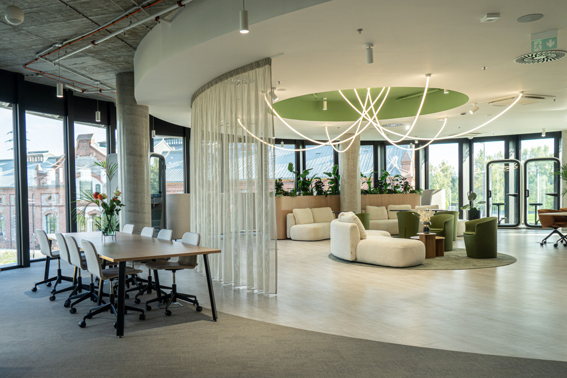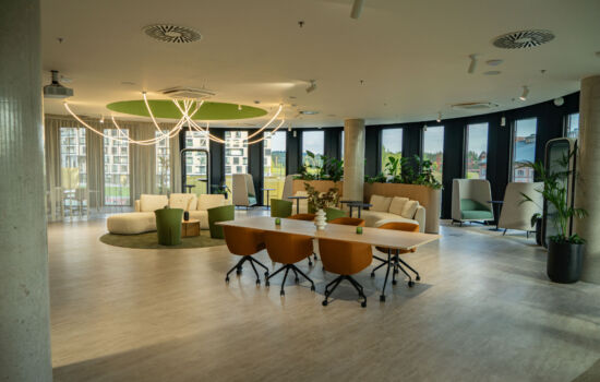 Eventová zóna pro 150 osob, 13 zasedacích místností vytváří ideální prostředí pro pracovní setkání a akce.